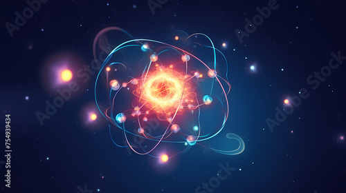 © jiejie, Obraz premium Atomic model with visible electron orbitals