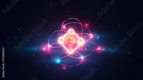 © jiejie, Obraz premium Atomic model with visible electron orbitals