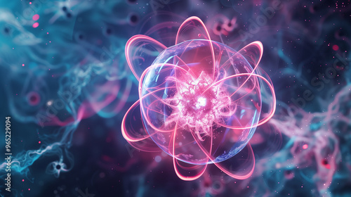 Obraz premium Atomic Structure with Glowing Energy and Particle Orbits