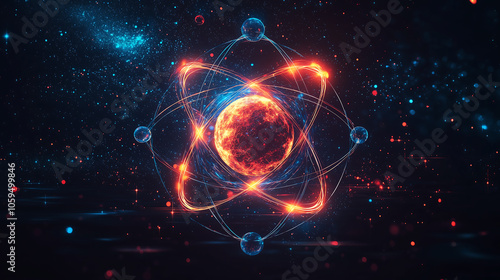 Obraz premium Atomic Structure with Glowing Orbits and Planets