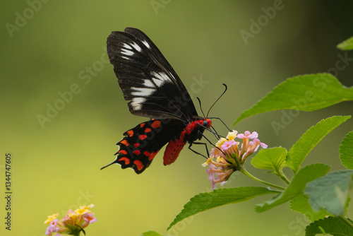© PIOTR, Fototapeta premium Atrophaneura Hector, the crimson rose on flower at green background. Photo from Nilaveli in Sri Lanka.