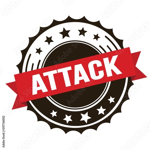 Obraz premium ATTACK text on red brown ribbon stamp.