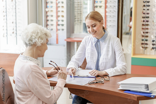 © Yakobchuk Olena, Fototapeta premium Attentive smiling young store assistant working