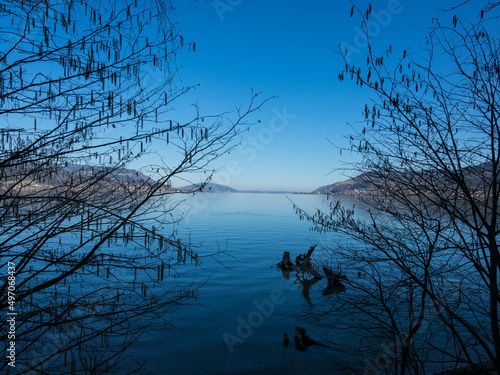 Fototapeta premium Attersee lake at Salzkammergut area in Austria. Tree branches, beautiful...