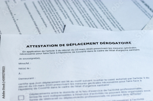 Obraz premium Attestation de déplacement dérogatoire