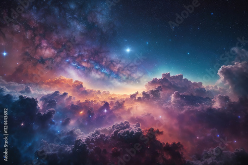 © RUMA, Fototapeta premium Attractive A painting of a night sky with stars and clouds