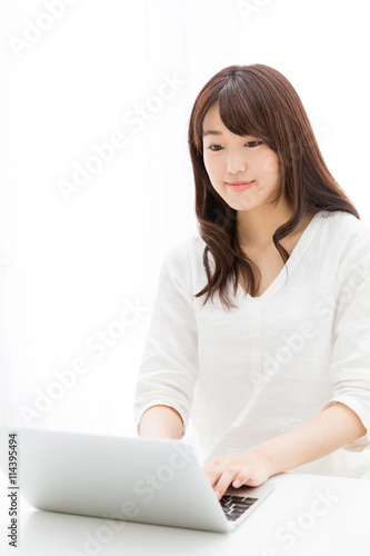 © taka, Naklejka premium attractive asian woman using laptop computer