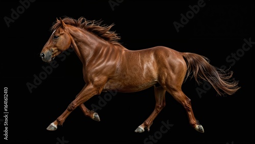 Obraz premium Attractive crimson stallion sprinting against a dark backdrop
