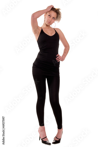 © Tadija Savic, Fototapeta premium Attractive girl in black clothes on white