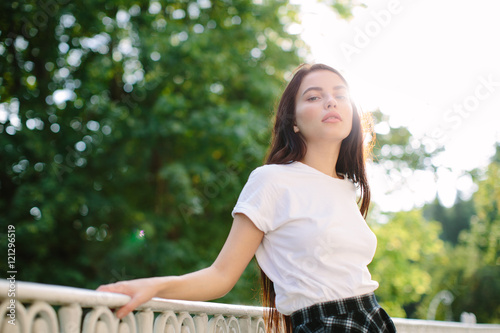 © Pavel Morozov, Naklejka premium Attractive girl posing outdoor