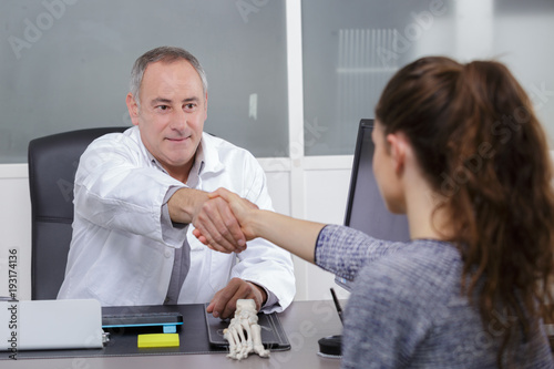 Obraz premium attractive male doctor shaking a patients hands in his office