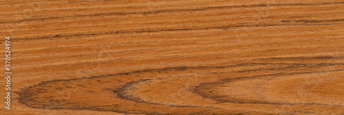© Dmytro Synelnychenko, Naklejka premium Attractive new teak veneer background in brown color. Natural wood texture, pattern of a long veneer sheet, plank.