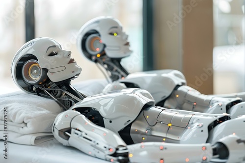 Fototapeta premium Attractive Robot Couple Lying Side By Side Enjoying Spa Treatment.