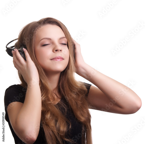 © yuriyzhuravov, Obraz premium attractive smiling woman with headphones on white background