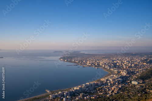 Fototapeta premium Attractive spring cityscape of Vlore city from Kanines fortress. Captivating...