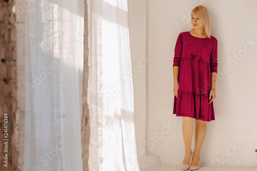 Fototapeta premium attractive stylish young girl near the window in light interior