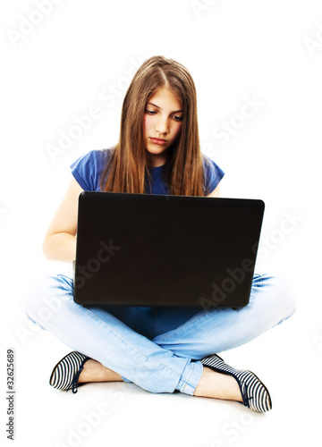 © Jelena Ivanovic, Naklejka premium Attractive teenage girl using notebook computer