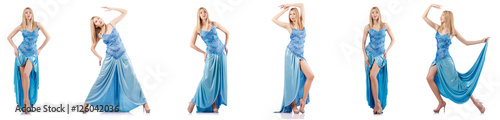 © Elnur, Naklejka premium Attractive woman in blue dress on white