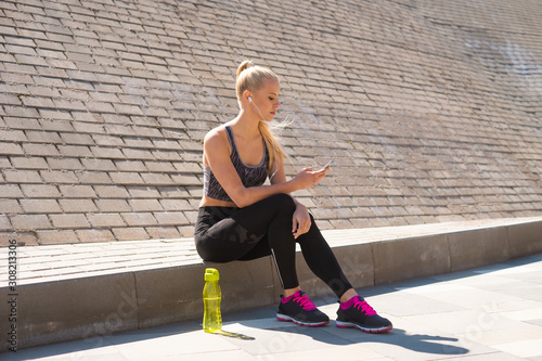 © Acronym, Fototapeta premium Attractive woman in sportswear training outdoor. Sport, jogging, healthy and active lifestyle.