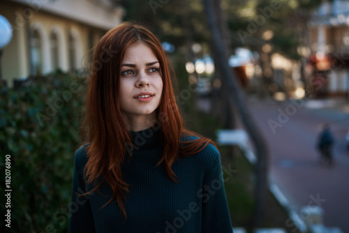 Fototapeta premium Attractive woman looking away walking along the street