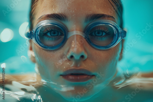 © Rattanapon, Naklejka premium Attractive woman portrait at pool for training, wellness and winner mindset.