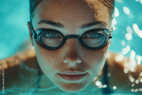 © Rattanapon, Naklejka premium Attractive woman portrait at pool for training, wellness and winner mindset.