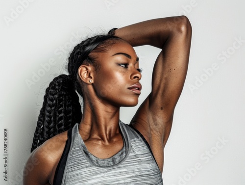 © Restyler, Fototapeta premium Attractive woman with a fashionable hairstyle in stylish sportswear. Fashion and beauty, active lifestyle and sports.