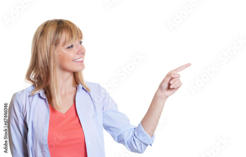 © Daniel Ernst, Obraz premium Attractive woman with dark eyes looking and pointing sideways