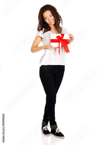 © Piotr Marcinski, Fototapeta premium Attractive woman with gift box.