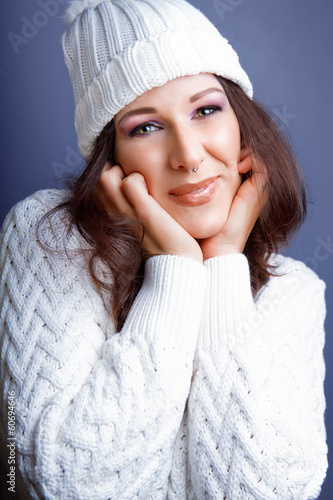 © ninared, Obraz premium attractive young caucasian woman in warm clothing.,