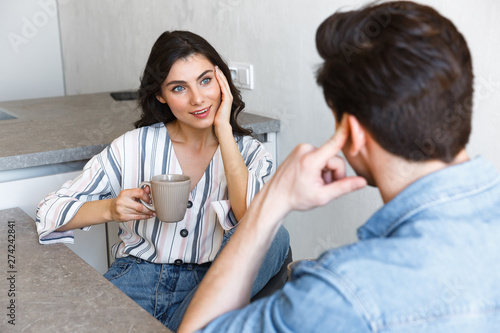 Obraz premium Attractive young couple drinking coffee