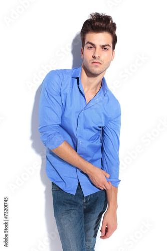 Fototapeta premium Attractive young fashion man pulling his sleeve.