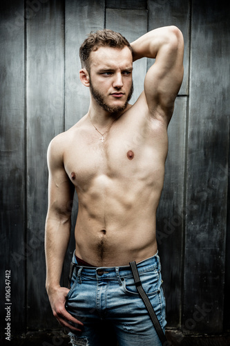© smmartynenko, Fototapeta premium Attractive young Man posing wearing jeans