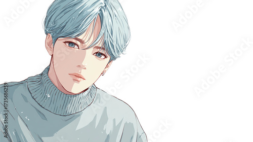 Fototapeta premium Attractive young man with blue hair illustration on transparent background