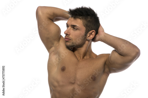 Fototapeta premium Attractive young muscle man showing athletic torso and biceps