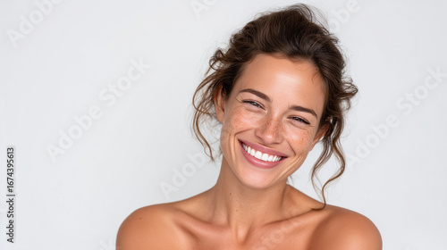 Obraz premium Attractive young woman laughing with happiness, showing smooth radiant skin,...