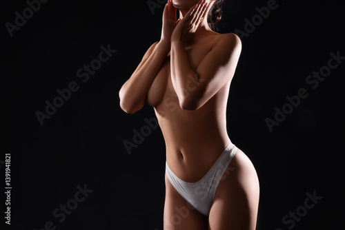 © Pixel-Shot, Obraz premium Attractive young woman on dark background