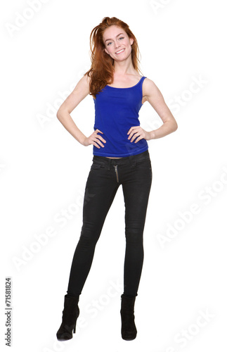 © mimagephotos, Fototapeta premium Attractive young woman with red hair smiling