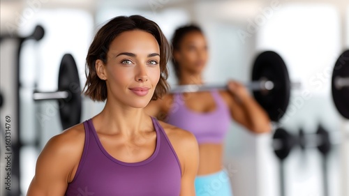 Obraz premium Attractive young woman working out on weight-lifting training machine