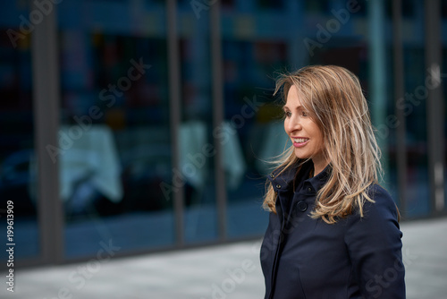 © Lars Zahner, Fototapeta premium Attraktive Geschäftsfrau macht Feierabend