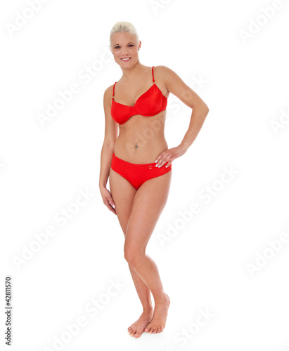 © Kaesler Media, Fototapeta premium Attraktive junge Frau in rotem Bikini
