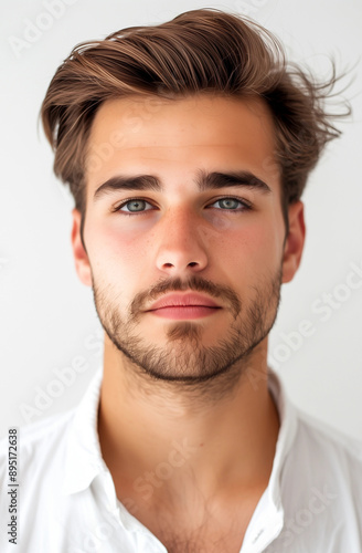 © Daniel Ernst, Obraz premium Attraktiver Mann mit Bart und Hemd - Passfoto