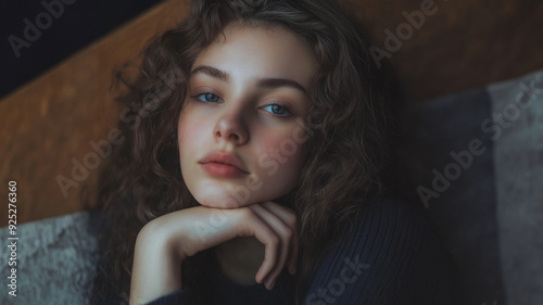 Naklejka premium Attraktives Porträt einer jungen Frau für Social-Media-Profile. Natürliches...