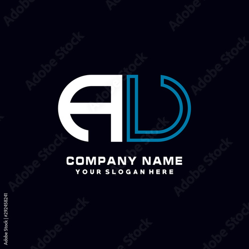 © MUCHAMMAD, Obraz premium AU initial logo oval shaped letter. Monogram Logo Design Vector, color logo white blue, white yellow,black background.