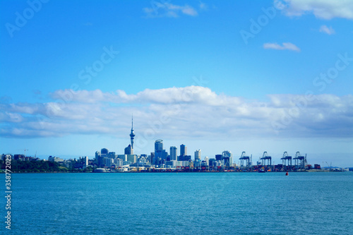 © Irina B, Naklejka premium Auckland City and Auckland port as seen from Okahu Bay.