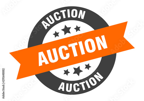 © Aquir, Obraz premium auction sign. auction orange-black round ribbon sticker