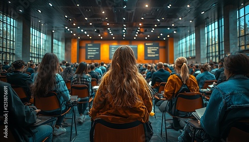 Naklejka premium Audience engaged at a professional conference or event in a well-lit modern...