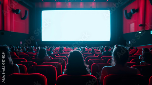 Fototapeta premium Audience in cinema with white screen and copy space.
