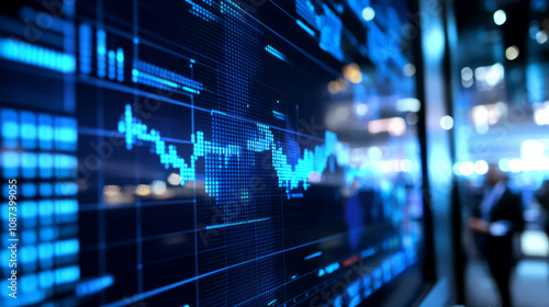 Fototapeta premium Audience ratings data displayed on a computer monitor, with analysts...