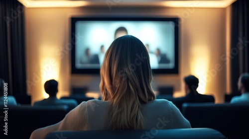 Naklejka premium Audience watching a presentation on a large screen